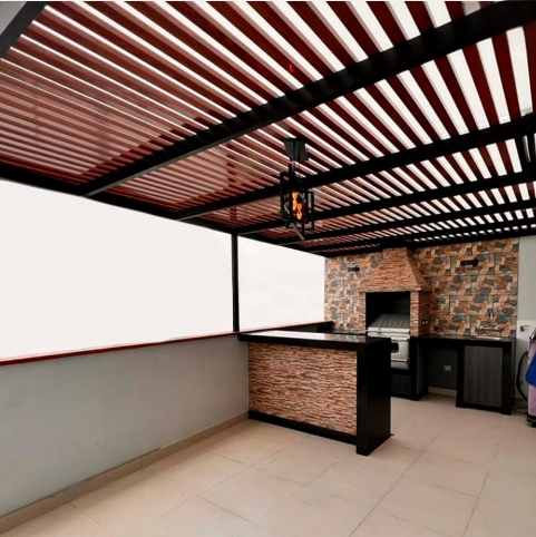 El aluminio negro mate es una opción elegante y moderna para estructuras exteriores como pérgolas. Su acabado mate proporciona un aspecto sofisticado y minimalista, que puede complementar una variedad de estilos arquitectónicos y de diseño de exteriores.